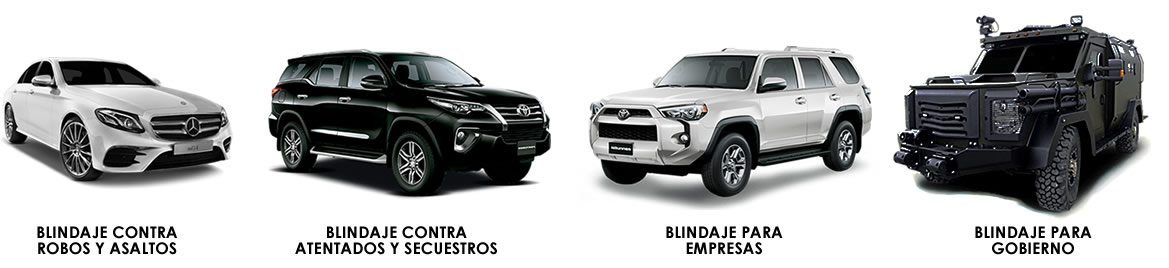 Este tipo de blindaje está diseñado para personas que tengan riesgo de robo, secuestro o simplemente quieran movilizarse en forma totalmente tranquila y segura. Personas que necesitan un vehículo que proteja su integridad física de las diferentes clases de armas utilizadas por los delincuentes. Niveles de blindaje: II, IIIA, III, IV, V.